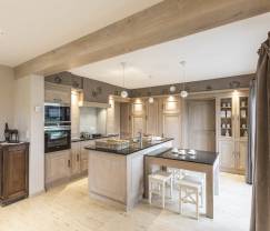 Der große, einladende Gemeinschaftsraum eignet sich wunderbar für unvergessliche Abende in geselliger Runde und gemeinsame Mahlzeiten. Diese lassen sich in der hervorragend ausgestatteten Küche zubereiten, die zum Esszimmer hin offen ist.