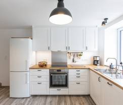 Het huis was tip top in orde; heel goed geisoleerd ook waardoor het er altijd snel warm was. Het was ook fijn om bij aankomst een fles vers appelsap in de koelkast te vinden. Wat ik wel gemist heb is een bergruimte (of garage) waar je alle vuile wandelschoenen, regenlaarzen, natte regenjassen en dergelijke kon achterlaten na een modderige, natte wandeling in de regen. Nu kom je onmiddellijk het huisje binnen in de keuken en lijkt het daar al snel een rommelige, vuile boel.