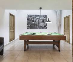 Nehmen Sie die Treppe, um das erste Stockwerk zu erkunden: ein zweites großes Wohnzimmer mit Fernseher, Internetverbindung, einem Spielzimmer mit Billardtisch und 5 Schlafzimmern, die jeweils sehr gemütlich sind und schön dekoriert wurden. Das Haus hat 4 Badezimmer.
