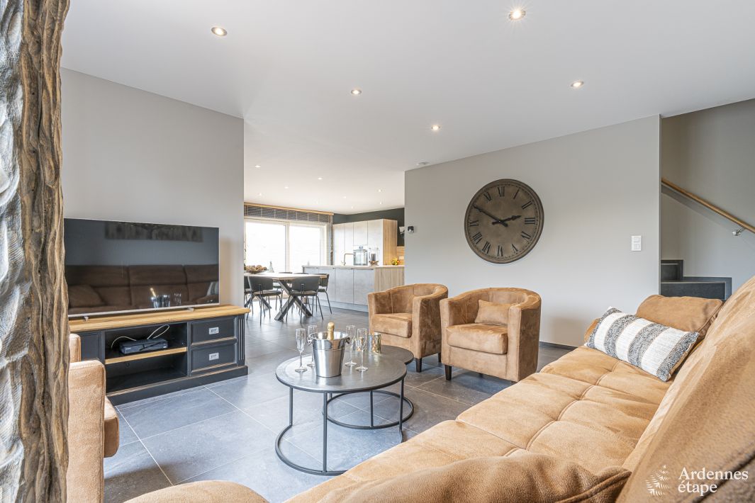 Schönes Haus für einen Aufenthalt mit allem Komfort im Tal der Semois. Mit 4 Schlafzimmern, 2 Badezimmern, einem Billardzimmer, einer Infrarotkabine und einem Garten. Viel Platz, , tadellose Ausführungen , traumhafte Schlafzimmer und ganz viel Licht: In diesem Ferienhaus jagt ein Highlight das andere! Hier kann man sich leicht vorstellen, auf dem bequemen Sofa mit einem Glas in der...