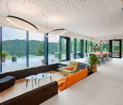 Die Villa ist komplett von großen Panoramafenstern umgeben, die Ihnen von jedem Raum der Villa einen atemberaubenden Blick auf die Wälder und das Tal ermöglichen. Den Sonnenaufgang vom Bett aus bewundern und abends den Sonnenuntergang genießen? Hier ist das möglich.