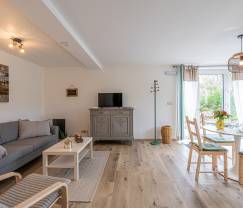 Ihre Ferienwohnung befindet sich in einer ehemaligen Schreinerwerkstatt und liegt unterhalb des Hauses des Eigentümers. Alles ist behaglich und perfekt für einen Aufenthalt zu zweit eingerichtet. Es gibt 1 Schlafzimmer und 1 Badezimmer, welche beide ansprechend gestaltet sind. Sie können hier auch einen Urlaub mit Baby machen, denn ein Babybettchen, eine Babywanne und ein Hochstuhl stehen zu Ihrer Verfügung. Die gut ausgestattete Küche und die Sitzecke mit TV bilden zusammen einen offenen Wohnbereich, was für ein großzügiges Raumgefühl sorgt. Sie verfügen über einen kleinen Garten mit Terrasse und Grill.