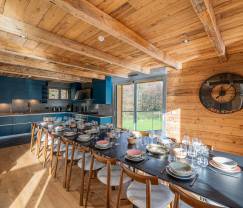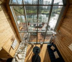 Das Chalet verfügt über 7 Schlafzimmer und 6 Badezimmer, darunter ein Schlafzimmer und Badezimmer, die für Menschen mit Behinderungen angepasst sind, sodass jeder komfortabel wohnen kann. Es gibt ein Babybett und einen Kinderstuhl, wodurch es auch perfekt für Familien mit kleinen Kindern ist. Das gemütliche Wohnzimmer mit einem Kamin sorgt für eine warme Atmosphäre, während die großzügige Terrasse mit Blick auf den See dazu einlädt, draußen die Natur zu genießen.