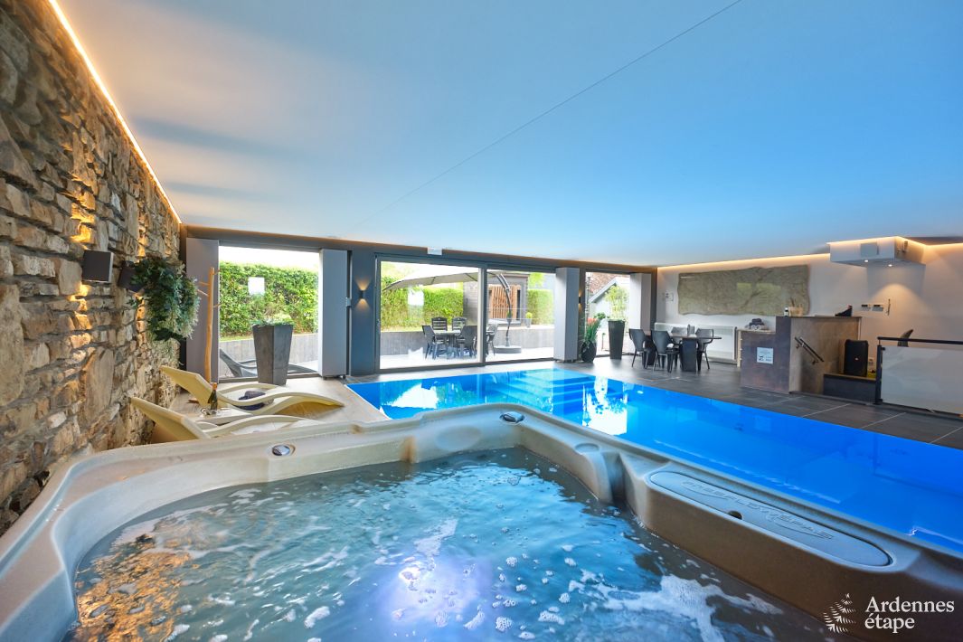 Was dieses Ferienhaus wirklich besonders macht, ist die umfangreiche Ausstattung, die auf Entspannung und Spaß für alle Altersgruppen ausgerichtet ist. Sie können herrlich im Innenpool entspannen oder die Wärme in den 2 Infrarotkabinen innen sowie der großzügigen Außensauna genießen. Für noch mehr Wellness gibt es einen Jacuzzi innen und außen, perfekt, um nach einem Tag voller Aktivitäten vollkommen zur Ruhe zu kommen.