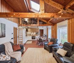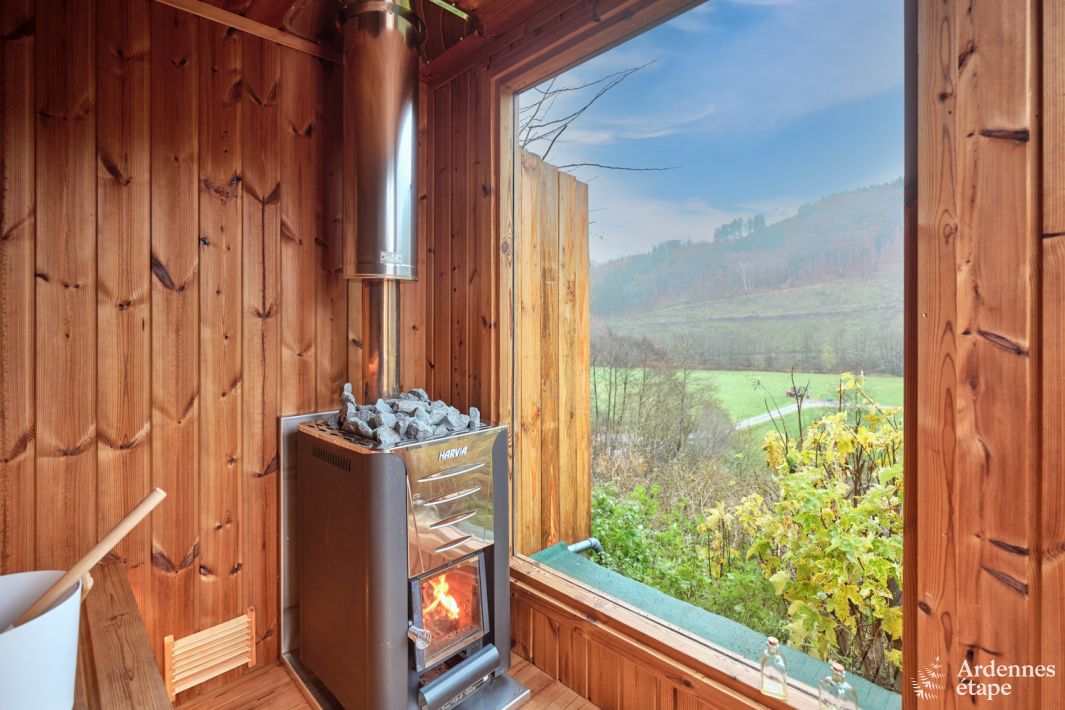 Einer der größten Pluspunkte dieser Chalet ist die Außensauna mit Glaswänden, die einen atemberaubenden Blick auf die umliegende Landschaft bietet. Die Terrasse ist erhöht und bietet einen Panoramablick über das Tal und den Fluss, der unter dem Anwesen fließt. Im Herbst kannst du hier sogar das Röhren der Hirsche aus den umliegenden Wäldern hören.