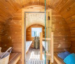Prachtige plek voor wandelen en fietsen. Het was ook heerlijk om een sauna bij het huisje beschikbaar te hebben, heel luxe! De woonkamer is overigens niet zo groot als hij op de foto's lijkt en het uitzicht op de boerderij direct naast het huisje was niet terug te vinden op de foto's. De gastheer en gastvrouw hielpen ons geweldig met alle dingen die we tegenkwamen. De bedden waren erg goed, dus we hebben een heerlijk verblijf gehad.
