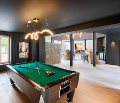 Für Kinder und auch Erwachsene gibt es einen umfangreichen Spielraum mit unter anderem einer Schaukel, Rutsche, Tischfußballspiel, Darts und einem Billardtisch. Draußen können Sie den Privatgarten mit Außenspielgeräten und einem Pétanque-Feld genießen. Auf der großen Privatterrasse genießen Sie eine herrliche Aussicht, komfortable Gartenmöbel und einen Grill.
