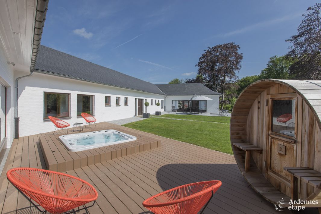 Diese Villa erwartet Sie in der Nähe von Ciney mit einer Spitzenausstattung für Ihren Urlaub mit allem Komfort. 14 Personen verbringen hier schöne gemeinsame Tage mit freiem Zugang zu Jacuzzi und Sauna.