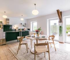 Gezellig, licht, ruim vakantiehuisje, wij voelden ons hier direct thuis , tuin is prachtig alles stond in bloei; je kijkt uit op een glooiend landschap nog mooier dan op de foto's . Geen overlast van de buren want die waren niet aanwezig. Wij hebben genoten van de rust !! Bij info keuken staat er broodrooster en mixer maar die hebben wij niet gevonden. Keukenuitrusting kan beter; bv : 2 grote borden is te weinig, kommen voor soep of cornflakes ontbreken.