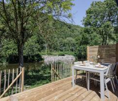 Klein aber fein. Unglaublich fein sogar! Denn trotz der geringen Größe genießen Sie in den Wohnräumen dieses winzigen Ferienhauses dennoch eine Klimaanlage, eine voll ausgestattete Küche mit allem Drum und Dran, einen gemütlichen Sitzbereich mit Fernseher und ein riesiges Fenster, das direkt auf den Fluss blickt, der nur 10 Meter entfernt liegt. Sie haben auch ein komplettes Badezimmer mit Dusche, Waschbecken und WC. Übernachten Sie im Obergeschoss in 2 Zwischengeschosszimmern. Auf den ersten Blick haben diese niedrige Decken, aber man gewöhnt sich sofort daran. Das eine Zimmer hat ein Doppelbett, das andere 2 Einzelbetten. Ideal also für eine Familie! Draußen haben Sie einen Garten und eine Holzterrasse, auf der Sie essen und grillen können. Gut zu wissen: Auch Ihr Hund ist hier willkommen!