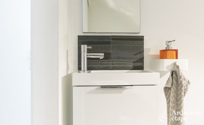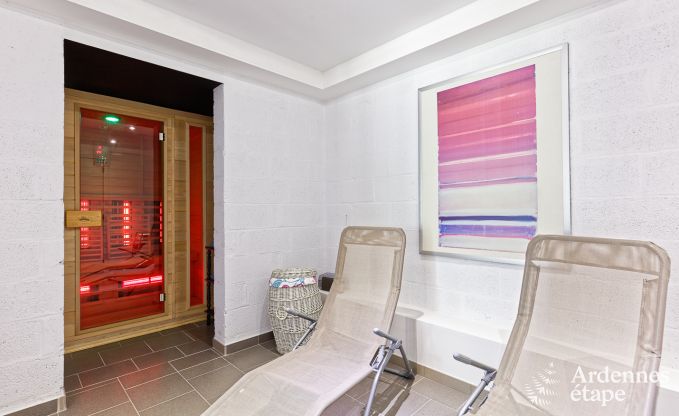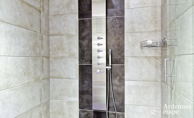 Dem außerordentlichen Charme dieses Anwesens auf den Anhöhen von Coo möchte man sich nicht entziehen. Im großen privaten Garten und auf der schönen Terrasse mit Grill können Sie die malerische Umgebung nach Herzenslust auf sich wirken lassen. Das Haus bietet unterschiedliche Bereiche, in denen für jeden Geschmack etwas dabei ist. Im Untergeschoss erwartet Sie ein Hobbyraum mit Bar und Billardtisch. Gleich nebenan gelangen Sie in den Wellnessbereich mit Infrarotsauna und Liegestühlen. Für den Komfort aller Gäste sind 3 der 4 Schlafzimmer mit einem privaten Badezimmer ausgestattet, und Sie verfügen über eine 4. Dusche im Wellnessbereich. Der Wohnbereich ist überaus einladend und reizvoll dekoriert und lässt durch die großen Glastüren viel Tageslicht hinein. Machen Sie es sich auf den gemütlichen Sofas am Kaminofen bequem, und genießen Sie Ihre Mahlzeiten in der geselligen Atmosphäre des Esszimmers. Darüber hinaus verfügen Sie über eine moderne, funktionsorientierte und sehr gut ausgestattete Küche.