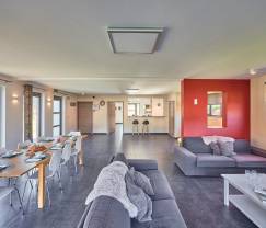 Das kleinste Haus bietet Platz für 4 Personen und verfügt über 2 Schlaf- und Badezimmer. Das zweite Haus ist für 5 Personen geeignet und hat ebenfalls 2 Schlaf- und Badezimmer. Das größte Haus kann bis zu 11 Personen aufnehmen und verfügt über 4 Schlaf- und Badezimmer. Im größten Haus gibt es genug Platz für alle, sodass 20 Personen zusammen an 2 großen Esstischen essen können.