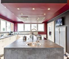 Die hochmoderne Küche bietet jeglichen Luxus und genügend Platz, um mit mehreren Personen gleichzeitig den Kochlöffel zu schwingen. Die Küche überzeugt mit einer großen Kochplatte (10 Kochfelder), zwei Backöfen, einem Mikrowellenherd, zwei Kühlschränke und sogar zwei Geschirrspülmaschinen. Während die Frauen in der Küche stehen, genießen die Herren einen leckeren Drink an der Bar.
