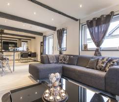Dieses Ferienhaus in Coo ist der ideale Ort für einen ruhigen und erholsamen Urlaub in der Provinz Lüttich. Es besticht mit einer modernen, eleganten und sehr gepflegten Inneneinrichtung. Die sichtbaren Deckenbalken und anderen Holzelemente verleihen dem Ganzen eine heimelige Note. Die Anordnung der einzelnen Bereiche sorgt für Geselligkeit ohne Abstriche bei der Privatsphäre eines jeden. Die Haushälfte mit drei Fassaden auf zwei Etagen bietet 80 m² Wohnfläche. Im Erdgeschoss befindet sich der Wohnbereich mit Polstergarnitur und großem Fernseher, DVD-Player und HiFi-Anlage sowie einem offenen Koch- und Essbereich. Über die Design-Sambatreppe gelangen Sie zu den zwei Zimmern und dem Badezimmer im Obergeschoss. Wenn Sie dieses Ferienhaus mieten, profitieren Sie zudem von einer 65 m² großen Terrasse mit Grill. Außerdem gibt es auf dieser Terrasse eine Outdoor-Sauna und ein Jacuzzi für besondere Wohlfühlmomente. Von hier blicken Sie auf eine bewaldete, grüne Hügel soweit das Auge reicht.