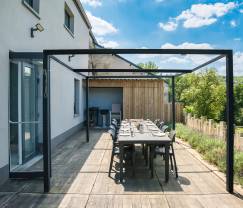 We waren op lang weekend met onze volwassen kinderen. Het was prachtig weer en hebben enorm van de tuin en terras genoten. Hebben ook de vuurkorven aangestoken en lang buiten gezeten. Het huis is praktisch daar ieder koppel een badkamer heeft. Er is een ruime berging en een heel leuke keuken die aansluiten op de eettafel. Voor ons was het TOP !