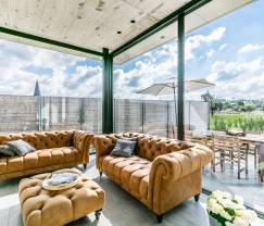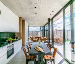 Mooie en moderne bouwstijl en sfeervolle inrichting maken het erg gezellig. Het grote glasoppervlak geeft optimaal licht binnen en maakt optisch het terras en tuin het verlengstuk van de woonkamer.