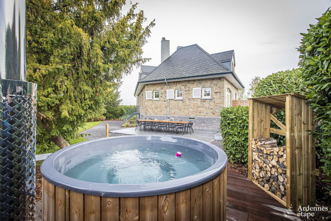 Wij waren met een groep van 12 personen. Alles was fantastisch en het ontvangst was ongelooflijk vriendelijk. Zeer vriendelijke man die ons extra hout voor de jaccuzi en haard bracht toen we belden en het batterijtje van de afstandsbediening in de keuken gelijk kwam maken. We hebben een zeer aangenaam verblijf gehad en kunnen het iedereen aanraden. Alles was zeer schoon en ruim. De eetkamer geeft met 12 personen wel een grote echo wat soms de gesprekken volgen wat vermoeiend maakte= detail