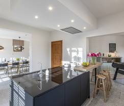 Luxuriöse Villa mit 7 Schlafzimmern mit Bad, einem großen Garten und einer privaten Sonnenterrasse mit skandinavischem Badefass. Kicker, Sauna und offener Kamin! Diese geräumige Villa wurde zu einer 4,5 Sterne-Unterkunft renoviert, damit bei Ihnen sofort Urlaubsstimmung aufkommt! Bei der gemütlichen, aber dennoch modernen und luxuriösen Einrichtung können Groß und Klein ihren...