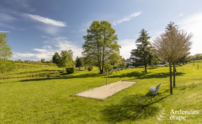 Der schöne Garten mit 10000m² bietet einen sehr schönen Ausblick auf die Landschaft der Ardennen, und Sie können hier unvergessliche Momente mit den verfügbaren Spielen für den Außenbereich verbringen. Ein Teich verleiht dem Garten einen einzigartigen, malerischen Charakter. Ihr Hund wird sich ebenfalls über das weite Grün freuen, das sich vor ihm auftut!