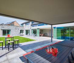 Nach einer erholsamen Nacht gemütlich aufstehen, ausgiebig frühstücken, einen gemeinsamen Apéritif genießen, am Kamin lesen, nach einem erlebnisreichen Tag unter der warmen Dusche entspannen... Ganz gleich, was Sie tun und in welchem Raum Sie sich aufhalten, dieses eindrucksvolle Ferienhaus bietet Ihnen einen atemberaubenden Blick über die natürliche Umgebung. Und das Highlight dieses Hauses? Das riesige Schachbrett im Garten! Es ist wunderschön anzusehen und zudem eine hervorragende Freizeitaktivität! Unterhaltung bieten außerdem der Billardtisch, der Tischkicker und die Tischtennisplatte. Perfekt bei Regen oder nach einem erlebnisreichen Tag an der frischen Luft. Die 8 einladenden Schlafzimmer mit privatem Badezimmer sind jedes für sich eine wahrhaftige kleine Ruheoase, in die Sie sich zurückziehen können, um dem fröhlichen Trubel der Gruppe zu entfliehen.