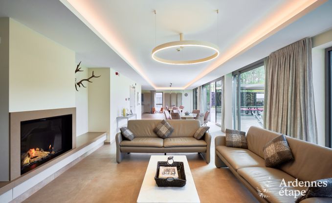 Nach einer erholsamen Nacht gemütlich aufstehen, ausgiebig frühstücken, einen gemeinsamen Apéritif genießen, am Kamin lesen, nach einem erlebnisreichen Tag unter der warmen Dusche entspannen... Ganz gleich, was Sie tun und in welchem Raum Sie sich aufhalten, dieses eindrucksvolle Ferienhaus bietet Ihnen einen atemberaubenden Blick über die natürliche Umgebung. Und das Highlight dieses Hauses? Das riesige Schachbrett im Garten! Es ist wunderschön anzusehen und zudem eine hervorragende Freizeitaktivität! Unterhaltung bieten außerdem der Billardtisch, der Tischkicker und die Tischtennisplatte. Perfekt bei Regen oder nach einem erlebnisreichen Tag an der frischen Luft. Die 8 einladenden Schlafzimmer mit privatem Badezimmer sind jedes für sich eine wahrhaftige kleine Ruheoase, in die Sie sich zurückziehen können, um dem fröhlichen Trubel der Gruppe zu entfliehen.