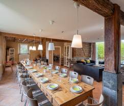 Nous étions 13 personnes,petits et grands confondus, nous avons passé un séjour magnifique. La maison est vraiment superbe, un charme incroyable. Les pièce de vie sont très bien aménagées. La cuisine ne manque vraiment de rien, la propriétaire a même pensé à mettre deux frigos, les jeux pour les enfants sont très bien adaptés. La propriétaire est discrète mais à la fois très réactive à nos besoins. Je recommande vivement la location de ce bien. L'emplacement est idéal pour se ressourcer.
