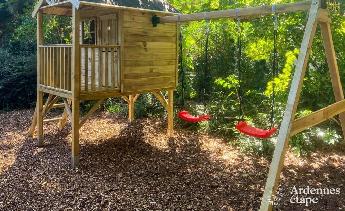 Stärken Sie in diesem Urlaub Ihre Verbindung zur Natur und erleben Sie in diesem sehr gepflegten und gemütlichen Chalet wunderbare Momente auf dem Land. Die Umgebung ist ideal für einen erholsamen Aufenthalt und dennoch in der Nähe der wichtigsten touristischen Attraktionen. Der Wohnbereich ist mit Holzwänden verkleidet und strahlt Wärme und Gemütlichkeit aus. Er besteht aus einem Wohnzimmer, Esszimmer und einer ausgestatteten Küche. Sie werden hier also gerne verweilen. Gespräche über den schönen Tag führen Sie am Kaminfeuer oder auf der Terrasse! Sie haben 4 Schlafzimmer zur Verfügung. Darüber hinaus gibt es im ersten Stock ein zusätzliches kleines Wohnzimmer mit Spielen für Groß und Klein. Das eingezäunte Grundstück ist 950 m2 groß und im Garten zwischen vielen Bäumen gibt es eine Schaukel und eine Spielhaus. Fahrräder können Sie sicher in der geschlossenen Garage abstellen. Entspannung pur garantiert!