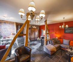 Einladende Inneneinrichtung, behagliche Zimmer mit integrierter Nasszelle, großes Wohnzimmer mit Pelletofen sind die Zutaten für einen angenehmen und gelungenen Urlaub.