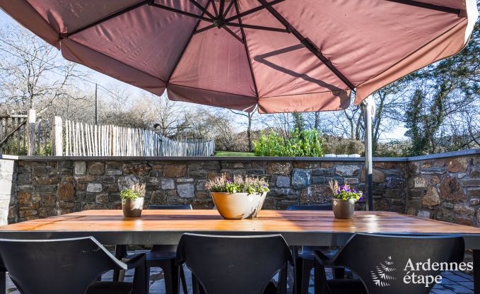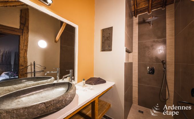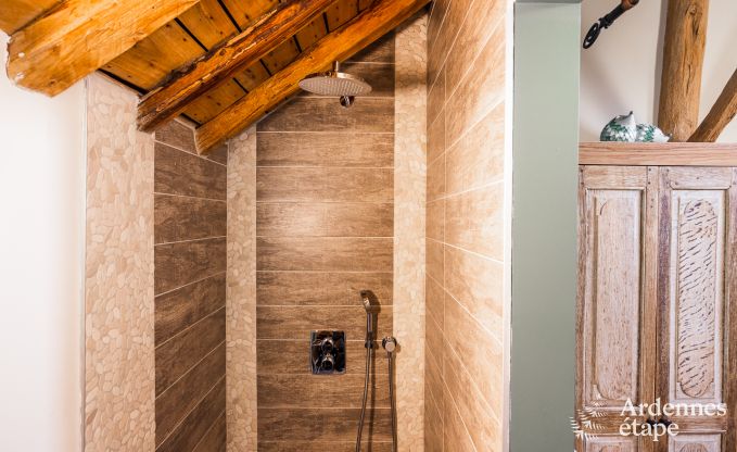Dieses 4-Sterne-Ferienhaus befindet sich in einem ruhigen Dörfchen, rund zehn Kilometer von Durbuy. Bruchsteine, sichtbare Deckenbalken und altes Fachwerk bestimmen die Atmosphäre in den Gemeinschaftsräumen. Lassen Sie am Holzofen mit seiner behaglichen Wärme und seinem schönen Flammenspiel die Seele baumeln.