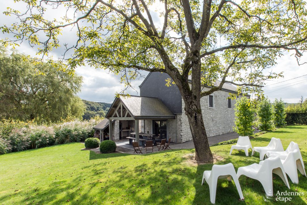 Dieses typische Ferienhaus der Ardennen ist eine wahre Insel der Ruhe und nur wenige Kilometer vom mittelalterlichen Städtchen Durbuy entfernt. Es verfügt über die komplette Ausstattung für einen angenehmen Urlaub im Herzen der belgischen Ardennen. Die Gestaltung durch die Vermieter wird Ihnen sicher gefallen. Dieser ehemalige Dorfladen wurde von Grund auf und mit Geschmack renoviert und bietet Ihnen elegante und komfortable Räumlichkeiten. Es erwartet Sie mit 4 Doppelzimmern, jeweils mit eigenem Badezimmer und einem Spielsaal mit Kicker- und Billardtisch für gesellige Abende mit der Familie oder mit Freunden. Entspannen Sie nach einem Tag auf den Wanderpfaden an der frischen Luft in der Sauna (für 3 Personen). Die Kinder werden von dem 1500 m² großen Garten und der Schaukel begeistert sein.
