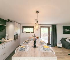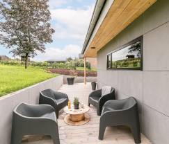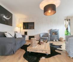 Dieses Ferienhaus in einem kleinen Dorf, mit Garten und überdachter Terrasse, bietet Ihnen ein Wohnzimmer mit Kamin, eine Sauna und 2 Schlafzimmer mit jeweils eigenem Duschbad. Dieser schicke und gemütliche Bungalow versetzt Sie in eine Oase der Wohlbefindens und der Gelassenheit. Sein modern gestaltetes Interieur und seine hellen Räume sorgen für eine gemütliche Atmosphäre, in der man...