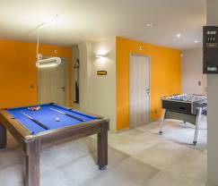 Ebenfalls im Obergeschoss befindet sich die eigens für die Kleinsten eingerichtete Spielecke mit einer kleinen Kletterwand, Maltafel, Holzspielzeugen... Die Größeren haben im Spielsaal im Erdgeschoss am Kicker- oder Billiardtisch oder beim Dartspiel ihren Spaß.