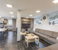 In 6 geräumigen und komfortablen Zimmern hat dieses Ferienhaus unter optimalen Bedingungen Platz für 10-14 Personen. Da jedes Zimmer über ein eigenes Badezimmer und einen Fernseher verfügt, wird sich hier jeder schnell wie zu Hause fühlen. Für Ihre gemeinsamen Momente steht Ihnen ein weitläufiger und gemütlich eingerichteter Wohnbereich zur Verfügung. Die großen Glasfronten bringen Licht in den Raum und bieten einen schönen Ausblick auf die Natur ringsum. Hier erwarten Sie auf jeden Fall angenehme Momente in geselliger Runde, an dem großen Tisch für ein gemeinsames Essen oder gemütlich auf den komfortablen Sofas im Wohnzimmer. Die voll ausgestattete und funktional gestaltete Küche, in der sich prima kochen lässt, schließt sich direkt an den Wohnraum an. In der warmen Jahreszeit ist ein Grillabend auf der großen Terrasse eine willkommene Abwechslung. Die Kinder können sich in dem großen privaten Garten mit Schaukel und Rutsche nach Herzenslust austoben.