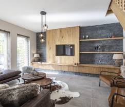 Dieses Ferienhaus, in dem Holz und zurückhaltende Farben vorherrschen, strahlt eine gemütliche Atmosphäre aus für unkomplizierte Momente des Zusammenseins mit der Familie oder mit Freunden. Es ist so weitläufig, dass jeder ausreichend Raum für sich findet. Das offene und helle Wohnzimmer lädt dazu ein, sich in fröhlicher Runde zu versammeln, zum Beispiel um ein Gesellschaftsspiel zu spielen. In dem großen Garten mit freiem Blick können sich die Kinder austoben!