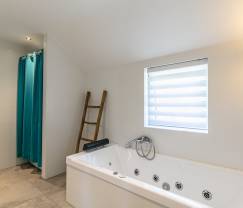Das Ferienhaus überzeugt mit einer äußerst hellen und offenen Einrichtung. Über eine hübsche Treppe und einen offenen Flur erreicht man die verbleibenden drei Schlafzimmer. Außerdem findet sich hier ein zweites Badezimmer mit herrlichem Whirlpool. Genuss pur! Der vollständig eingezäunte private Garten, die Terrasse und die verschiedenen Spielgeräte für Kinder (Schaukel, Rutsche und Kletterwand) bilden zusätzliche Elemente, die zu einem angenehmen und komfortablen Aufenthalt in diesem hübschen Ferienhaus beitragen.