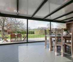 Ob mit der Familie oder mit Freunden, hier werden Sie sich wohlfühlen! Besonders schön ist das gemütliche, große Esszimmer mit dem riesigen Schiebefenster, das einen herrlichen Blick auf die Terrasse und den Garten bietet und viel Tageslicht hineinlässt. Die peppigen Wandfarben verleihen den Wohnräumen positive Energie, während die Dekoration der Schlafzimmer eher schlicht gehalten ist und zum Ausruhen einlädt. Am Tag den Grill anwerfen und am Abend Gesellschaftsspiele am Kamin - was will man mehr? Ein ideales Ferienhaus , um Zeit miteinander zu verbringen.