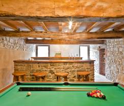 Dieses Kleinod bietet Platz für 24/30 Personen und wurde eigens mit dem Ziel konzipiert, Ihnen ein Höchstmaß an Komfort zu bieten. Im Obergeschoss befinden sich die 13 Schlafzimmer, die alle über ein eigenes Bad verfügen. Jeder einzelne Raum dieses Hauses wird Sie sofort in seinen Bann ziehen. Mit ihrem alten Gemäuer und dem sichtbaren Gebälk verleihen sie dem Ganzen ein einzigartiges Flair. Der Wohnbereich ist mit seinem rustikalen und ungewöhnlichen Mobiliar besonders bemerkenswert. Abende am Kamin werden ebenso dazugehören wie große Tafelrunden in festlichem Rahmen! Die voll ausgestattete Küche mit ihrer sehr funktionsorientierten Einrichtung dürfte im Übrigen auch ausgewiesene Meisterköche inspirieren. Außerdem gibt es hier einen extra Tisch, an dem die Jüngsten gerne Platz nehmen werden, während sich die Erwachsenen im Haupt-Esszimmer versammeln. Auch in Sachen Entspannung und Unterhaltung ist die Messlatte in dieser Unterkunft sehr hoch gelegt, mit einem Entspannungsbereich, Sauna, Whirlpool, Dampfbad und Indoorpool. Für die Kinder wird mit einem Spielzimmer, u.a. mit Billardtisch und Tischkicker, ebenfalls einiges geboten.
