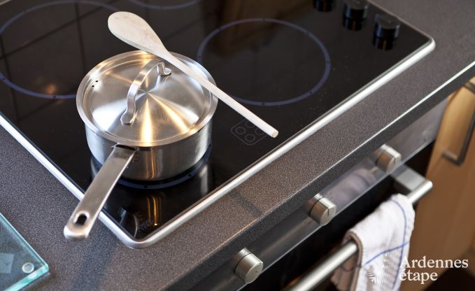 Modernes Ferienhaus für 8 Personen in der Nähe von Durbuy in der Provinz Luxemburg. Das Landhaus bietet 3-Sterne-Komfort und wurde gemütlich, zugleich jedoch mit einem modernen Touch eingerichtet, um Ihren Aufenthalt möglichst komfortabel zu gestalten. Das Wohnzimmer verfügt über eine großzügige Sitzecke mit Holzofen und Sofas, einen großen Esstisch, der für acht Personen großzügig Platz bietet, sowie eine moderne, offene Küche, die mit sämtlichen Komfort ausgestattet ist.