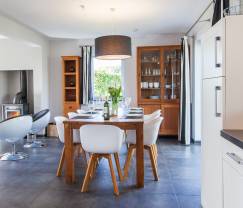 Wenn Sie auf der Suche nach einem idyllischen Ort für einen Familienurlaub auf dem Lande sind, werden Sie von diesem Haus und seiner erholsamen Umgebung sofort angetan sein. Hier finden Sie einen schönen privaten Garten mit einer Schaukel und einer Rutsche für die Kinder. Die Erwachsenen wiederum werden die Terrasse mit Grill zu schätzen wissen, wo Sie herrliche Abende in gemütlicher Runde verbringen können. Im Haus verfügen Sie über alle Annehmlichkeiten, um unvergessliche Momente zu erleben, beispielsweise über eine überaus moderne Küche mit umfassender Ausstattung. Hier können Sie festliche Mahlzeiten zubereiten und diese anschließend mit der Familie in der einladenden Atmosphäre des Esszimmers genießen. Der Wohnbereich ist besonders angenehm, mit viel Tageslicht und einer eindrucksvollen modernen Dekoration. Hier finden Sie ein sehr einladendes Wohnzimmer mit Kaminofen und gemütlichen Sofas. Besonders erholsam ist der Wellnessbereich mit Sauna, wo Sie nach einem erlebnisreichen Tag auf den Beinen nach Herzenslust entspannen können. Schließlich verfügen Sie über 4 Schlafzimmer und 2 Badezimmer.
