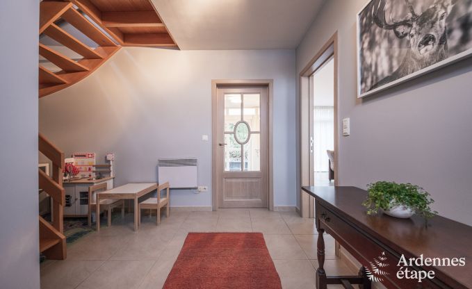 Freuen Sie sich, Sommer wie Winter, auf außergewöhnliche Momente in diesem hübschen Ferienhaus im Herzen der belgischen Ardennen. Machen Sie es sich an sonnigen Tagen mit Ihrem Lieblingsbuch auf der Terrasse bequem und setzen Sie sich dann an den Tisch, um einen Aperitif oder ein leckeres Barbecue zu genießen. Währenddessen werden die Kids begeistert Hütten im Wald direkt neben dem Ferienhaus bauen. Nehmen Sie sich nach einem Tag an der frischen Luft Zeit, um in der Infrarotkabine zu entspannen. Auch die Winterabende können Sie gemütlich am Kamin im Wohnzimmer oder am Tisch mit einem Gesellschaftsspiel verbringen...