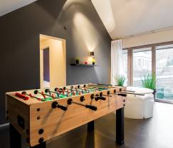 Der Charme dieses Hauses endet nicht bei seiner Kapazität. Es bietet eine Vielzahl von Einrichtungen, um einen unvergesslichen Aufenthalt zu garantieren. Spielbegeisterte werden sich über den Tischfußball und den Kicker freuen. Für diejenigen, die Entspannung suchen, stehen der Außenwhirlpool und die Sauna zur Verfügung. Darüber hinaus verfügt das Haus über einen Mehrzweckraum und einen Entspannungsbereich für gesellige und entspannende Momente.