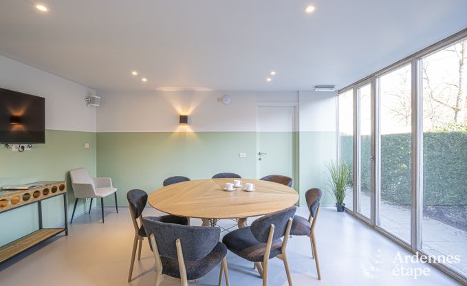 Gîte parfaitement équipé et très bien situé. La cuisine est vraiment bien équipée pour des grands groupes. Jacuzzi, sauna, salle de repos et baby-foot, tout est présent pour passer un excellent moment entre amis ou en famille.