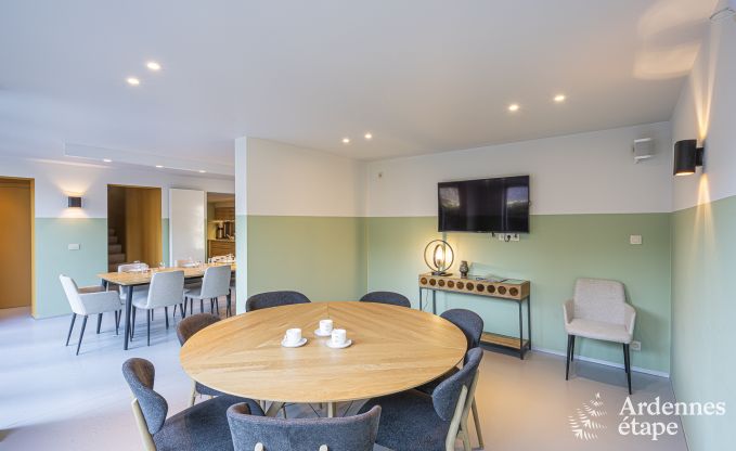 Willkommen in diesem prächtigen Ferienhaus in Durbuy, im Herzen der Ardennen. Dieses Haus kann bis zu 18 Personen beherbergen, was es zum idealen Ort für Familientreffen oder Treffen mit Freunden macht. Mit 8 komfortablen Schlafzimmern und 8 Badezimmern hat jeder Gast seinen privaten Bereich zum Entspannen und Auftanken. Der Charme dieses Hauses endet nicht bei seiner...