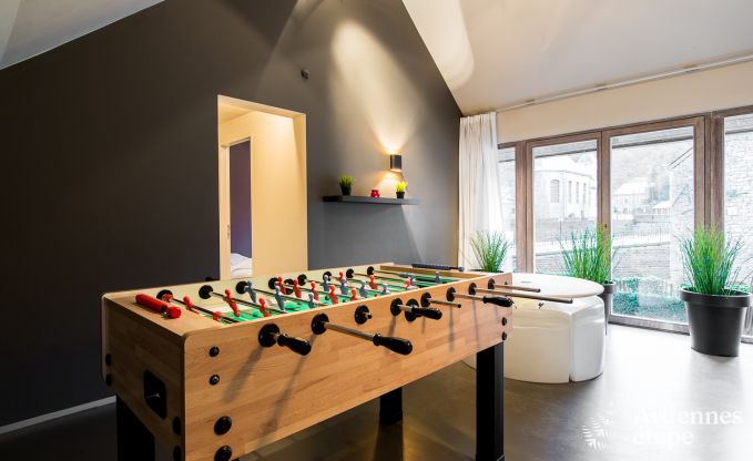 Der Charme dieses Hauses endet nicht bei seiner Kapazität. Es bietet eine Vielzahl von Einrichtungen, um einen unvergesslichen Aufenthalt zu garantieren. Spielbegeisterte werden sich über den Tischfußball und den Kicker freuen. Für diejenigen, die Entspannung suchen, stehen der Außenwhirlpool und die Sauna zur Verfügung. Darüber hinaus verfügt das Haus über einen Mehrzweckraum und einen Entspannungsbereich für gesellige und entspannende Momente.