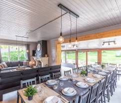 Diese bezaubernde Ferienunterkunft befindet sich mitten im Grünen auf einem 1500 m² , großen Gelände. Entdecken Sie dieses charmante Anwesen mit einem wunderschönen großen und hellen Gemeinschaftsbereich, an den eine voll ausgestattete Küche angrenzt. Wie wäre es mit einem Cocktailabend, begleitet von einem Dart- oder Kickerturnier im Speisesaal? Am Abend versammelt sich die ganze Truppe am Kamin oder zum Schwitzen in der Sauna im Wellnessbereich. Sie verfügen über 9 schlicht eingerichtete und dezent dekorierte Zimmer, die auf das Untergeschoss und das Obergeschoss verteilt sind. Sobald sich die ersten Sonnenstrahlen zeigen, lassen Sie sich auf der angenehmen, 35 m² großen Terrasse nieder und genießen Sie die baumbestandene Umgebung mit Spielgeräten für die Kinder!