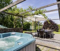 Uitstekend verblijf gehad met ongewoon veel zon . Na de middag was buiten eten een ware voltreffer . Uitzonderlijk mooie sauna met mooi uitzicht . De whirlpool was dagelijks in gebruik . Iedereen had zijn privacy met een eigen badkamer . De jongsten konden zich afzonderen in de geweldige speelkamer . In de zitkamer konden we genieten van een geweldig panoramisch uitzicht . We zaten op minder dan 1 km van Bomal waar we ons konden bevoorraden . De fietstochten langs de ourthe waren een voltreffer
