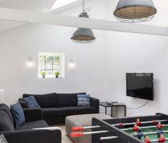 Diese Unterkunft ist ideal für Familien mit Kindern aller Altersstufen, denn es gibt Spielzeug und Spielgeräte für kleinere Kinder und für Jugendliche. Außerdem verfügen Sie über einen Tischkicker im Spielzimmer im Untergeschoss, damit Sie in den Schlafzimmern Ihre wohlverdiente Ruhe genießen können.