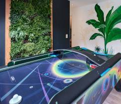 Was diese Villa wirklich besonders macht, ist das umfangreiche Angebot an Einrichtungen. Sie können im Außen-Whirlpool entspannen, perfekt, um nach einem Tag voller Aktivitäten zur Ruhe zu kommen. Außerdem gibt es eine Sauna im Freien, die Ihr Wellnesserlebnis komplett macht. Für gemütliche Abende gibt es eine überdachte Terrasse mit einem Projektor, ideal, um unter dem Sternenhimmel einen Film zu schauen. Der große Privatgarten lädt zum Entspannen und Spielen ein, während der Spielraum mit einem Airhockey-Tisch Spaß für Jung und Alt bietet.