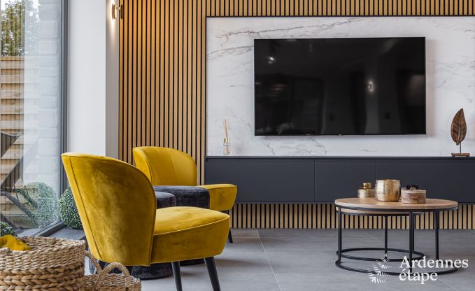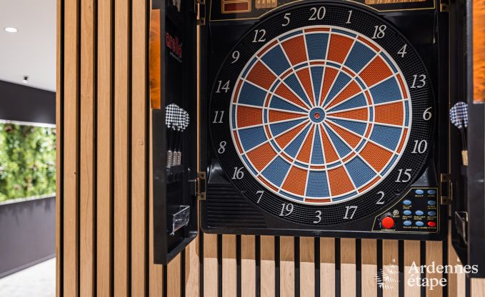 Dieses luxuriöse Ferienhaus verwöhnt Jung und Alt auf alle möglichen Arten. Zunächst gibt es 7 Schlafzimmer, jedes mit eigenem Bad. Darüber hinaus gehen das Esszimmer und das Wohnzimmer nahtlos ineinander über. Der riesige Raum hat große Fenster, durch die man so weit man kann auf das atemberaubende Panorama unter sich blickt. Das Ganze ist geschmackvoll eingerichtet mit schicken Möbeln und Sesseln. Auch die Küche ist geräumig und perfekt und sehr modern ausgestattet und führt direkt zum Esszimmer. Das Erdgeschoss steht im Zeichen der Entspannung. Sie können sich in der Sauna und dem Whirlpool entspannen. Darüber hinaus kann jeder sich beim Billard, Tischfußball oder Darts vergnügen. Es gibt sogar eine echte Bar mit einer Theke, Barhockern und gemütlichen Clubsessel. Auch die große, hölzerne Terrasse bietet einen Blick auf das Tal. Es ist herrlich, dort zu essen und zu grillen. Und wir haben noch nicht einmal über den großen Garten gesprochen. Dieser ist eingezäunt durch eine hecke, so dass Ihr Hund auf 2500 m2 ungestört toben kann (unter ihrer aufsicht). Jeder wird den beheizten Außenpool mit seinen bequemen Liegestühlen lieben. Und alle Kinder werden von dem hölzernen Spielhaus mit seiner Kletterwand und Schaukeln begeistert sein.