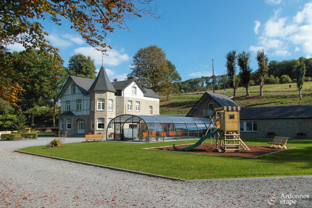 Willkommen in dieser prächtigen Luxusvilla in Durbuy , einem wahren Rückzugsort in einem großen bewaldeten Park am Flussufer. Dieses Ferienhaus ist die perfekte Wahl für diejenigen, die sich inmitten der Natur erholen möchten und gleichzeitig erstklassige Annehmlichkeiten genießen wollen. Mit Platz für bis zu 15 Personen ist es ideal für...